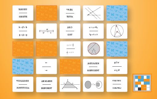 stupcu, a potom se sjete da je 12 složen broj pa uspješno pogode i karticu u četvrtom retku i trećem stupcu. Budući da im je ranije ostao jedan nepogođeni pojam za asocijaciju „koordinatni“, dotaknu i karticu u trećem retku i drugom stupcu.